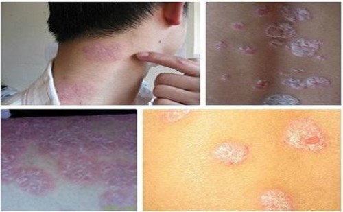 3、红皮病性牛皮癣:是较严重,较少见的一种,此型是指在约全身皮肤的70%以上呈弥漫性红色,暗红色浸润性皮损,表面有大量糠皮样皮屑,有时在腋下,大腿根部和脐部因肿胀而使表皮剥脱和渗出,口咽鼻及眼结膜可充血发红,患者常有发热畏寒,头疼及全身不适等症状。