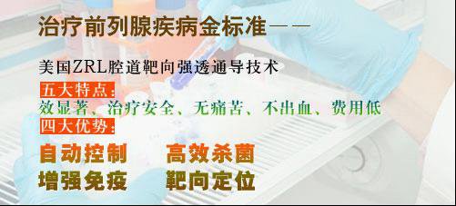 黑龙江省青年医学会附属男科医院引进美国ZRL前列腺腔道靶向治疗技术,更精确诊断出前列腺疾病的病因及杀死致病菌的方法,并采用集热疗、高频电磁场震荡 效应、有效约物快速导入病灶部位的介入治疗为一体的ZRL前列腺腔道靶向治疗技术,突破前列腺三层脂质薄膜对约物吸收的屏蔽,从根本上解决了前列腺炎反复发作的难题。